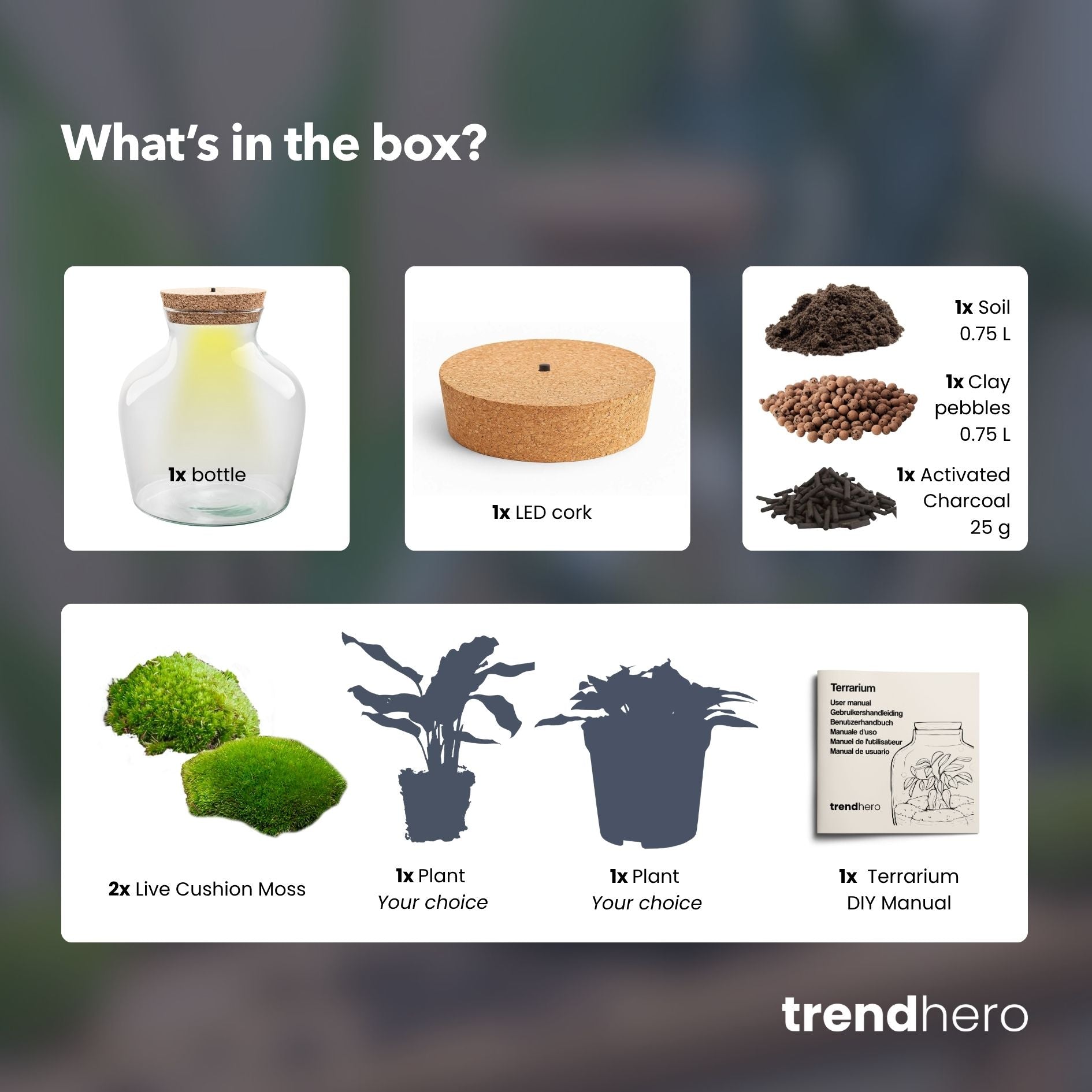 Little Joe - Flaschengarten mit Licht - DIY Terrarium mit Pflanzen im Glas - Ø 20 cm ↑ 22 cm