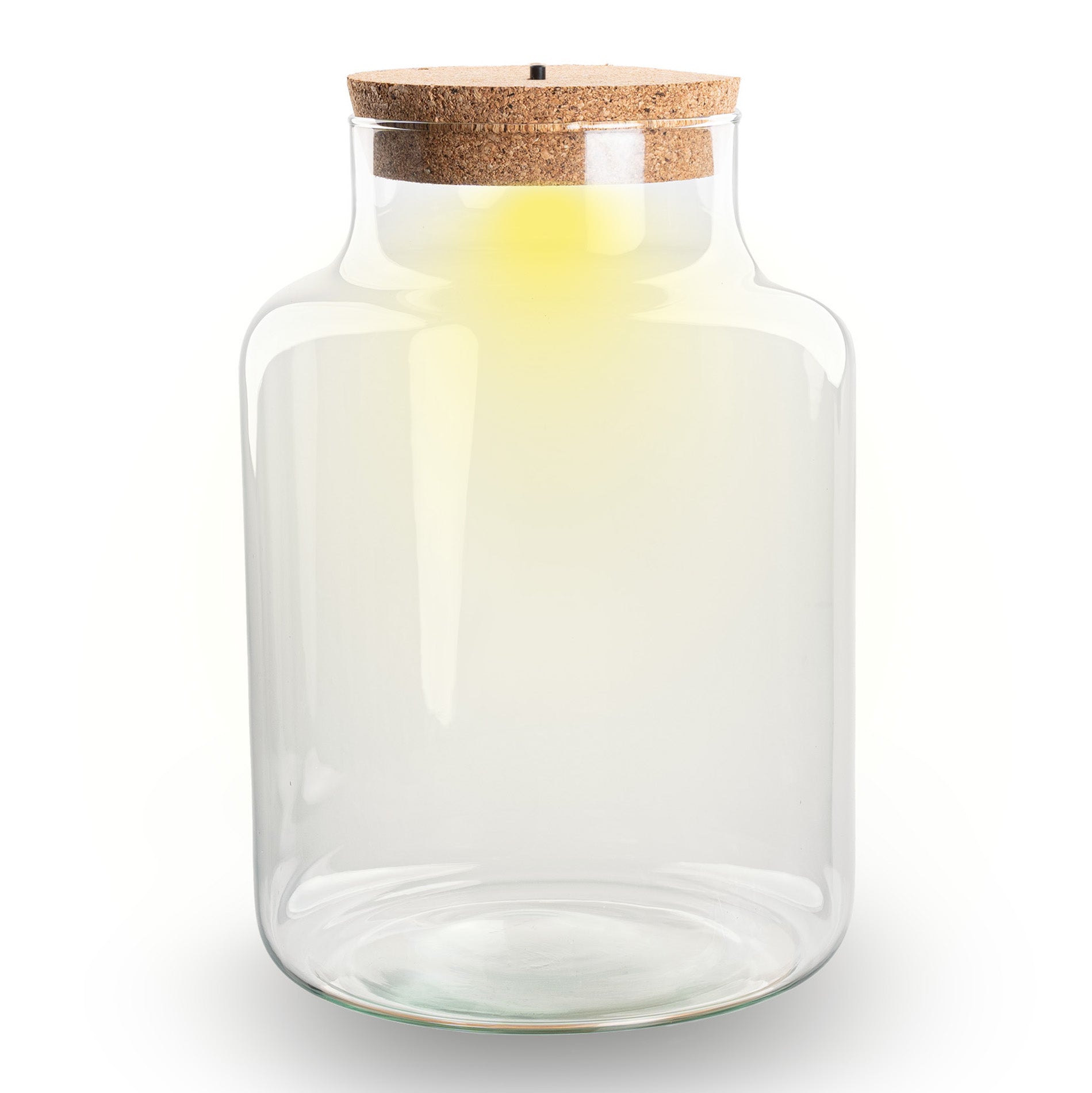 Terrarium Flasche ‘Little Milky’ - inkl. LED-Korken - Geschlossenes Terrarium Ø 25 cm ↑ 17 cm